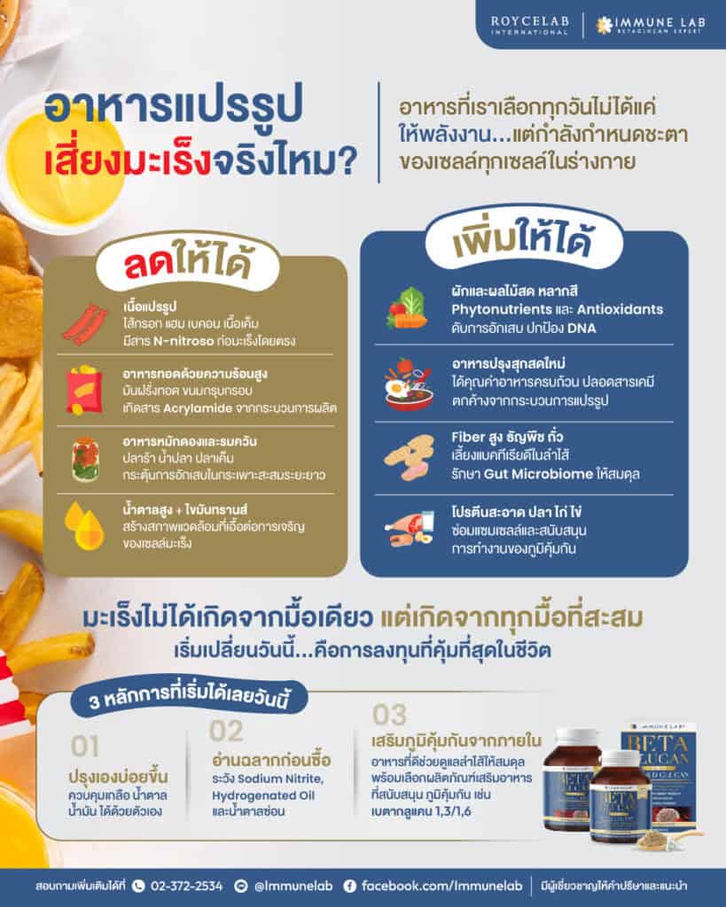 สิ่งสำคัญที่ต้องเข้าใจคือ มะเร็งไม่ได้เกิดจากมื้อเดียว แต่เกิดจากการสะสมของสภาพแวดล้อมในร่างกายที่เอื้อต่อการเจริญของเซลล์ผิดปกติตลอดหลายปี การเลือกอาหารทุกวันจึงไม่ได้แค่ให้พลังงาน แต่กำลังกำหนดชะตาของเซลล์ทุกเซลล์ในร่างกาย